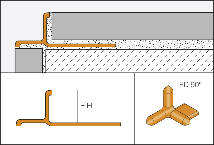 | Toepassing | Schlüter®-INDEC is dus eveneens geschikt als overgangs- of aanslagprofiel onder een deur of tegen een vensterraam, waardoor rondom een schaduwvoeg ontstaat. Voor een eenvoudige en mooi gevormde verbinding van de Schlüter®-INDEC-profielen aan de buitenhoeken, zijn bijpassende vormstukken verkrijgbaar. | |