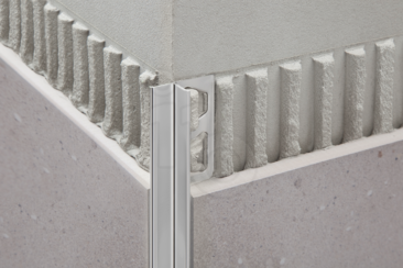 Schlüter®-INDEC is een hoogwaardig afsluitprofiel van geanodiseerd aluminium voor uitwendige hoeken en afsluitingen van wandbetegeling. Het zichtbare oppervlak vormt een terugspringende sierrand. Naast de decoratieve functie van het profiel worden de tegels aan de rand op een doeltreffende manier beschermd tegen schade door mechanische belasting.