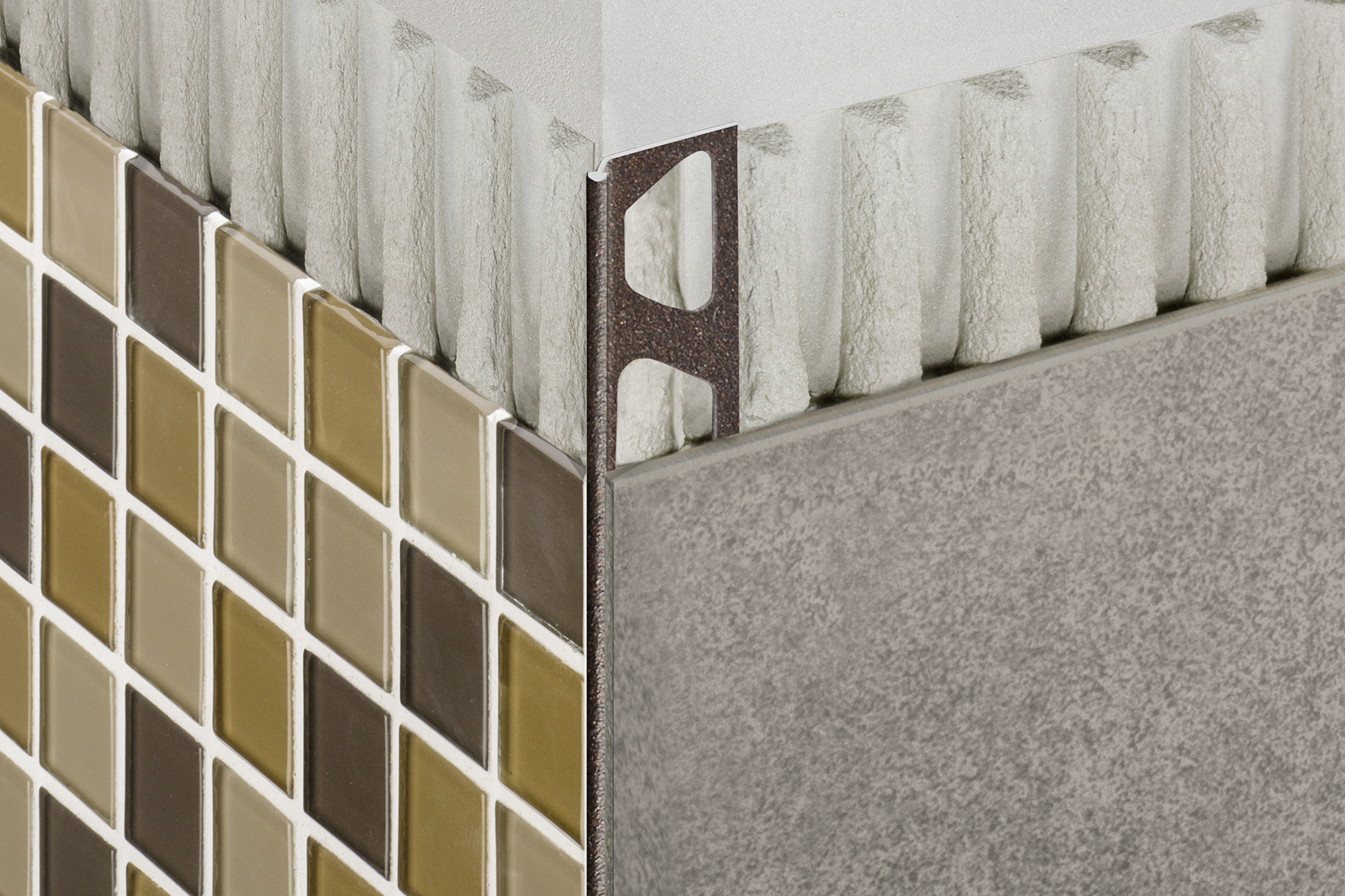 Schlüter®-FINEC is een hoogwaardig afsluitprofiel uit roestvast staal of geanodiseerd aluminium voor uitwendige hoeken in wandbekledingen uit tegels, glasmozaïek of plamuursel/pleisterlaag. Het afsluitvlak van het profiel beschermt de rand van de bekleding tegen mechanische schade en vormt een elegante, smalle hoek